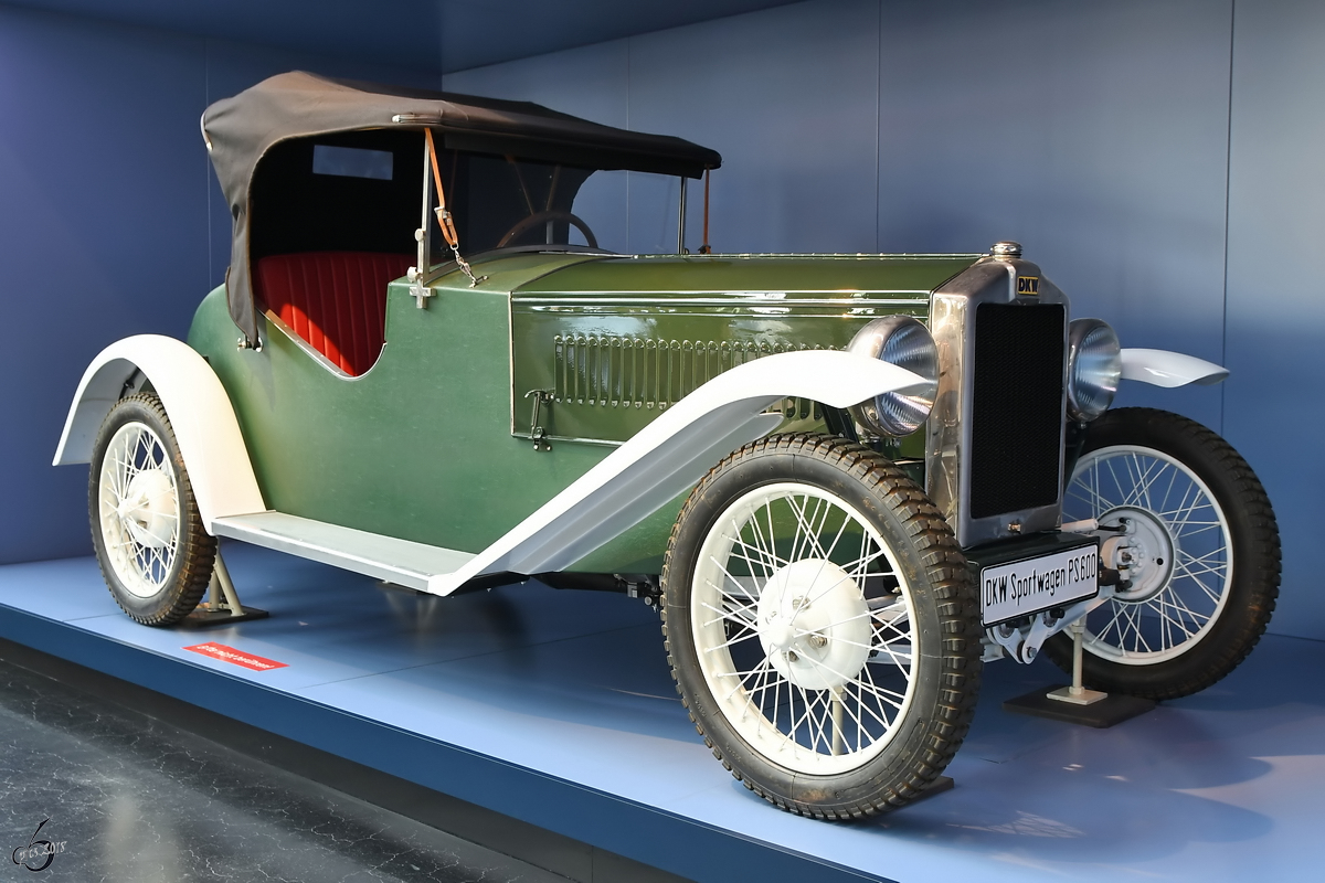 Ein DKW PS800 Sportwagen, ausgestellt im Sächsischen Industriemuseum Chemnitz. (August 2018)