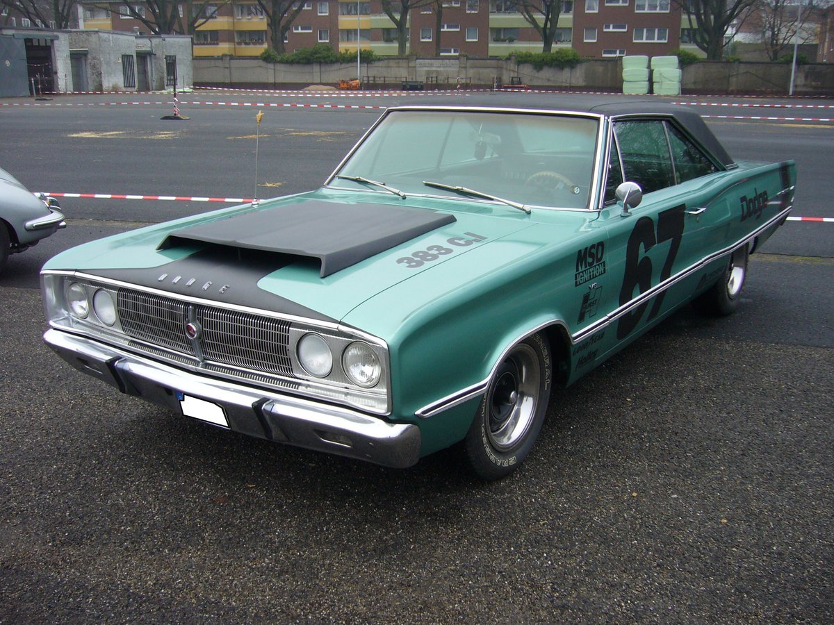 Dodge Coronet 440 Coupe des Modelljahres 1967. Wenn man den Aufklebern glauben schenken darf, arbeitet unter der Motorhaube ein V8-motor mit 383 cui. (6276 cm³), der ca. 330 PS leistet. Mo´s Bikertreff Krefeld am 17.12.2017.