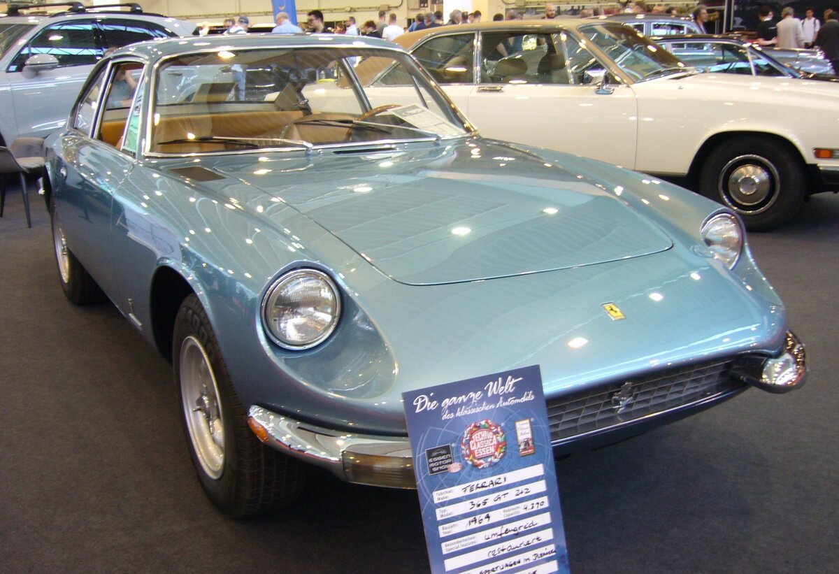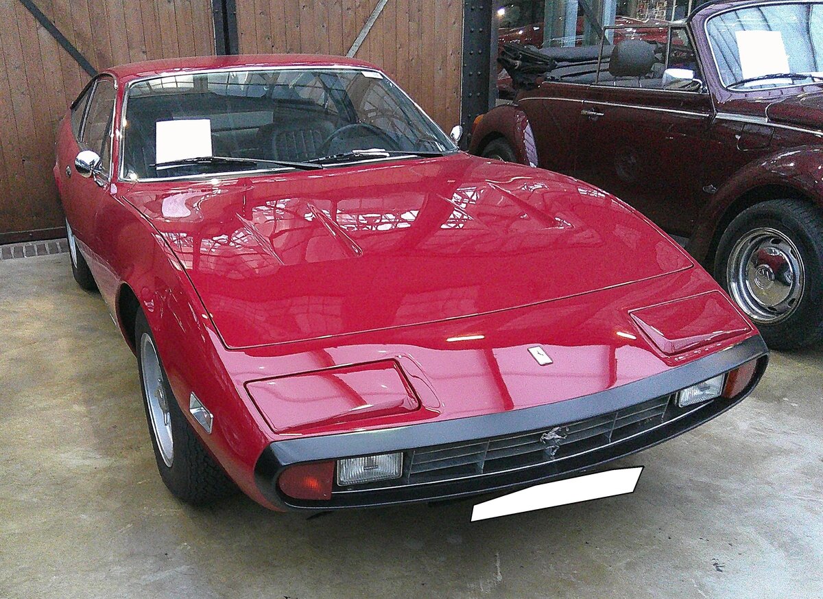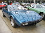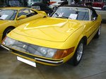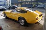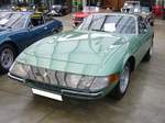 Ferrari 365 GTC/4. 1971 - 1973. Von diesem Coupe mit zweiter Sitzreihe wurden lediglich 505 Exemplare gefertigt. Der abgelichtete Wagen ist im Farbton blu metallizato lackiert und entstammt dem Modelljahr 1972. Der V12-motor hat einen Hubraum von 4390 cm3nd leistet 340 PS. Die Höchstgeschwindigkeit liegt bei 260 km/h. Classic Remise Düsseldorf am 19.12.2017.