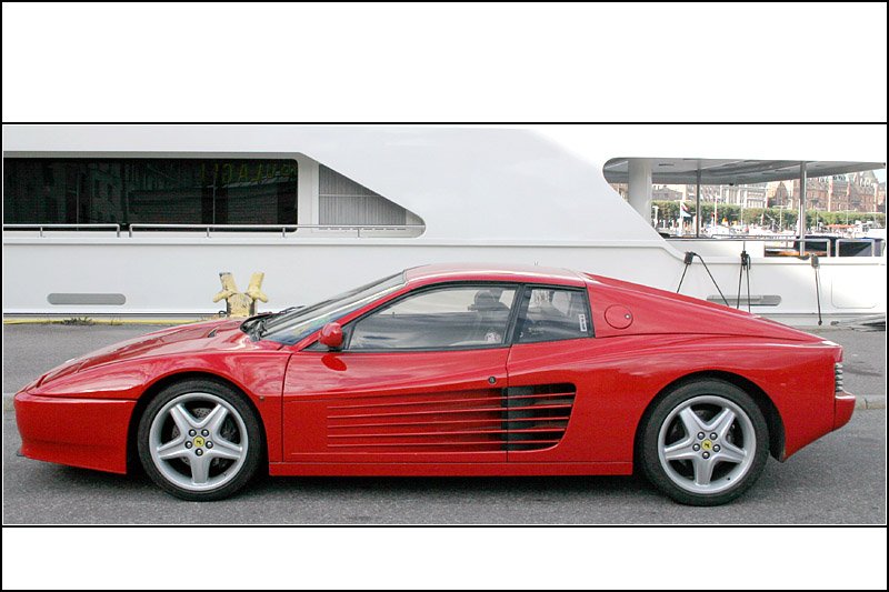 Der Ferrari Testarossa wurde von 1984 bis 1996 gebaut und erreichte eine Höchstgeschwindigkeit von 290 km/h. 17.08.2007 (Matthias)