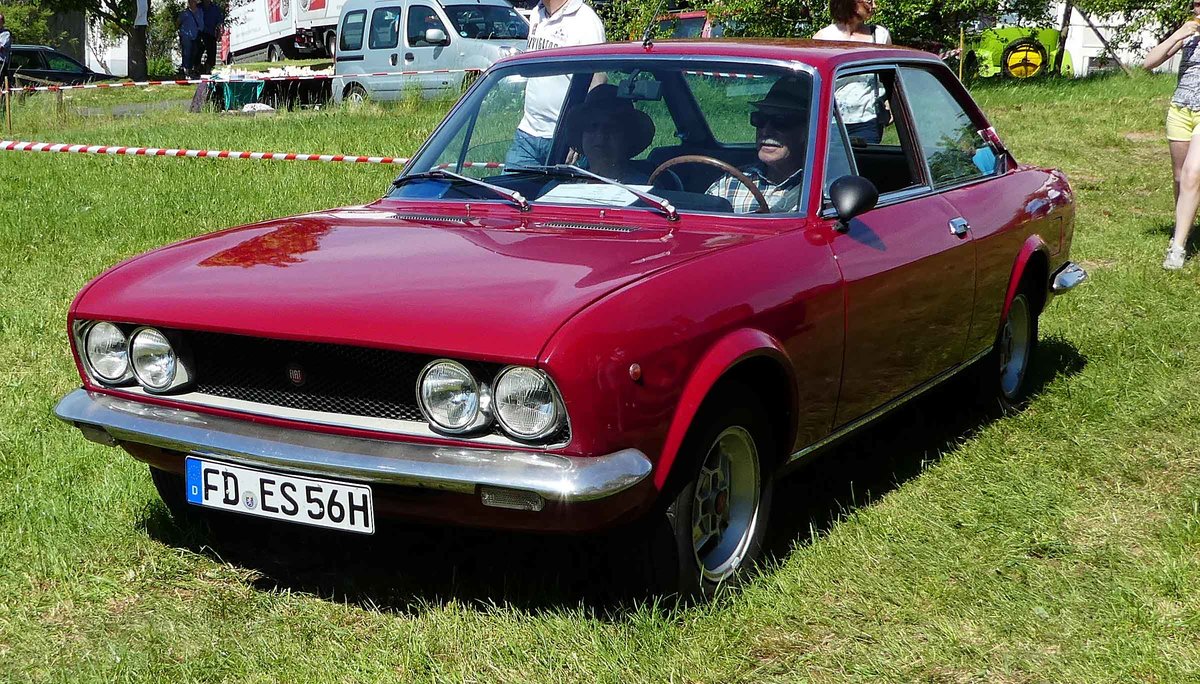 =Fiat 124 Sport rollt zu seinem Standplatz bei der Oldtimerausstellung in Thalau im Mai 2017