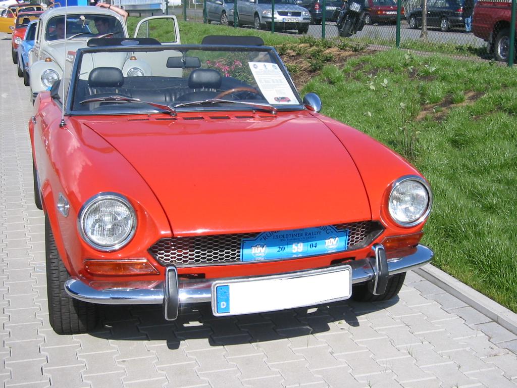 Fiat 124 Sport Spider. Der Sport Spider wurde im November 1966 auf dem Turiner Auto-Salon vorgestellt. Für die Karosserie zeigte sich Sergio Pininfarina verantwortlich. Bis 1972 wurde dieses Cabriolet fast unverändert produziert. Angetrieben wird der Wagen von einem Vierzylinderreihenmotor, der aus einem Hubraum von 1438 cm³ 90 PS leistet. Die Höchstgeschwindigkeit gab Fiat mit 174 km/h an. Oldtimerrallye in Niedersachsen im September 2004.