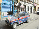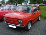 Fiat 126,  mitgezogen am 1. Mai 2025 auf der Zufahrt zum Oldtimer Frühlingserwachen beim Sportpark Loherhof Geilenkirchen