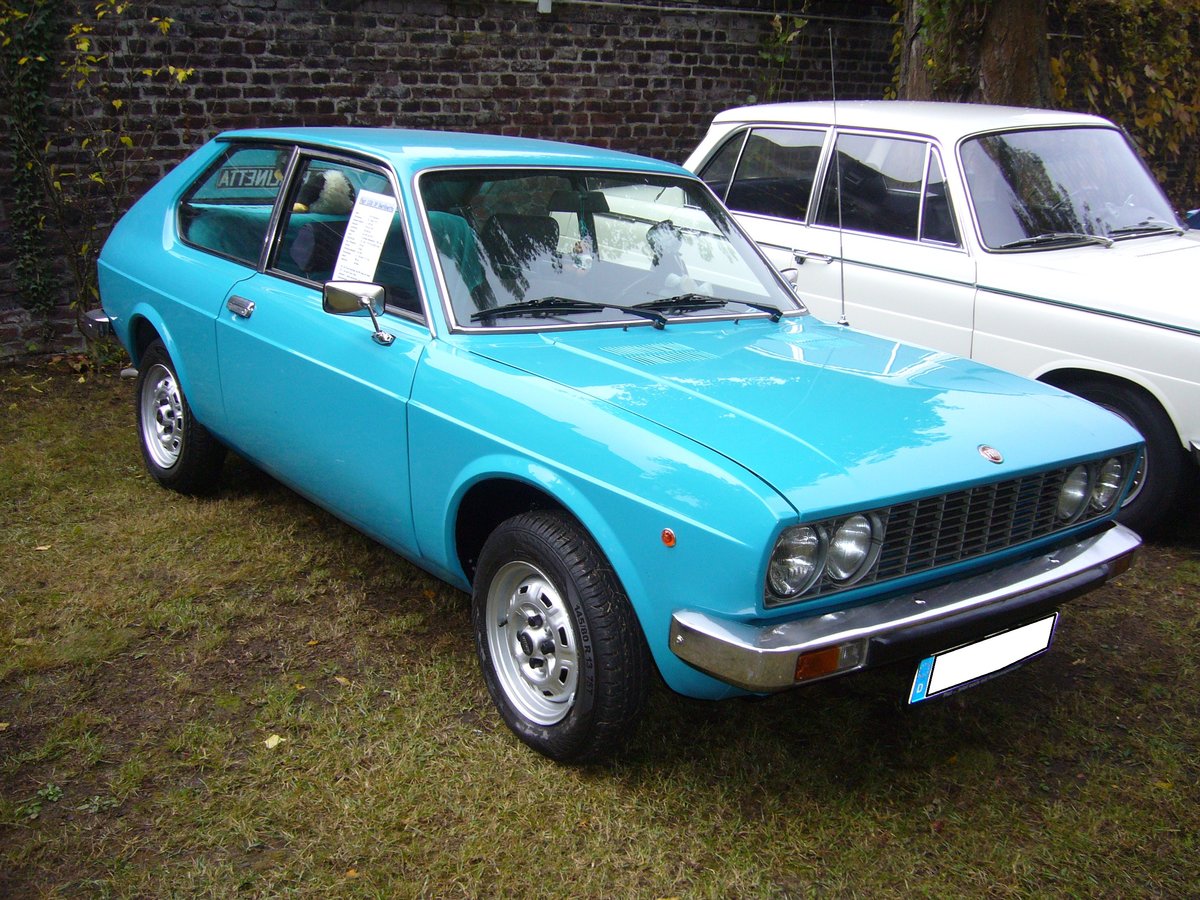 Fiat 128 3P Berlinetta. 1975 - 1979. Der abgelichtete 128 P3 Berlinetta ist mit der größernen, lieferbaren Maschine ausgeliefert worden. Der 4-Zylinderreihenmotor leistet 73 PS aus 1290 cm³ Hubraum. Dieses schicke Coupe ist im Farbton Adriablau lackiert. Zum Jahresende 2015 waren von diesem Modell noch 65 Fahrzeuge in Deutschland angemeldet. Oldtimertreffen an der Niehburg in Oberhausen am 23.10.2016.