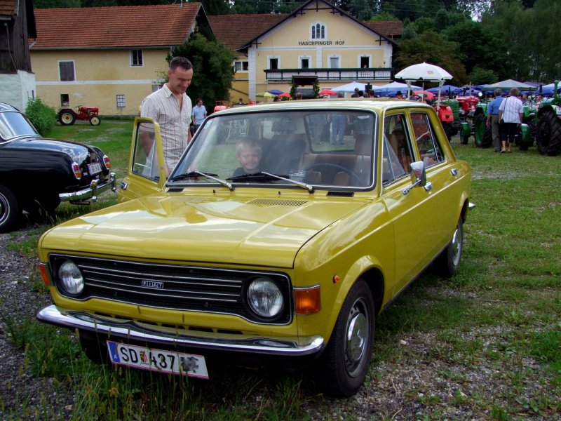 Fiat128-1100 soeben beim "Haschpinger Hof" vorgefahren, um an der Oldtimerausstellung teilzunehmen; 080803