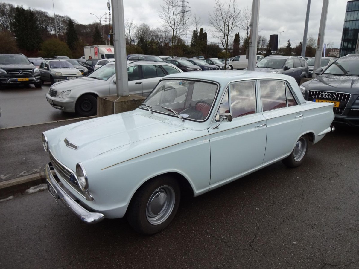 Ford Consul Corsair, gebaut von 1963 bis 1970. Das Auto mit der eigenwillig gezeichneten Fahrzeugfront war während seiner rund siebenjährigen Produktionszeit als zwei- und viertürige Limousine (Saloon), als zweitüriges Cabriolet (Convertible) und fünftüriges Kombimodell namens Estate lieferbar. Auch bei der Motorisierung hat der Kunde/in die Qual der Wahl zwischen einigen Vierzylinderreihen- und V4-Motoren. Insgesamt setzte Ford/GB 331.095 Autos dieses Typs (alle Karosserieversionen zusammen gefasst) ab. Der Vierzylinderreihenmotor dieses Autos hat einen Hubraum von 1499 cm³ und leistet 65 PS. Classic car meeting in Brynmawr/South Wales am 27.07.2025.
