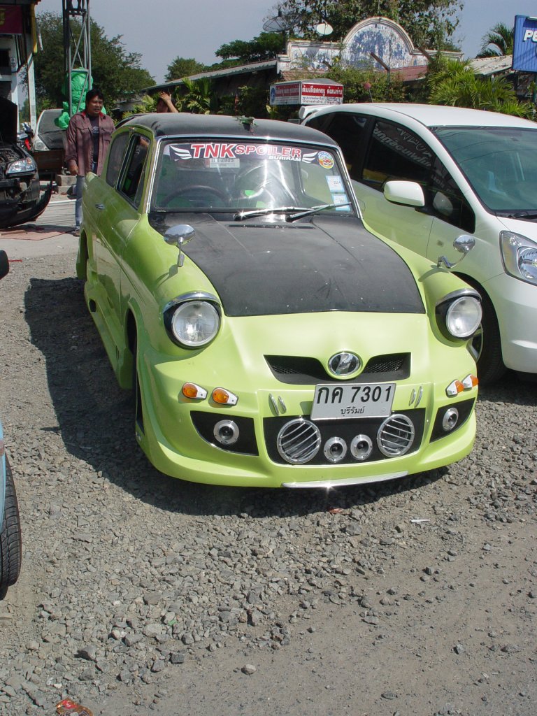 Nochmals der englische Ford Anglia 105E (Baujahr 1959 - 1967) mit stark veränderter Karrosserie am 20.01.2011 in Buri Ram im Nordosten Thailands