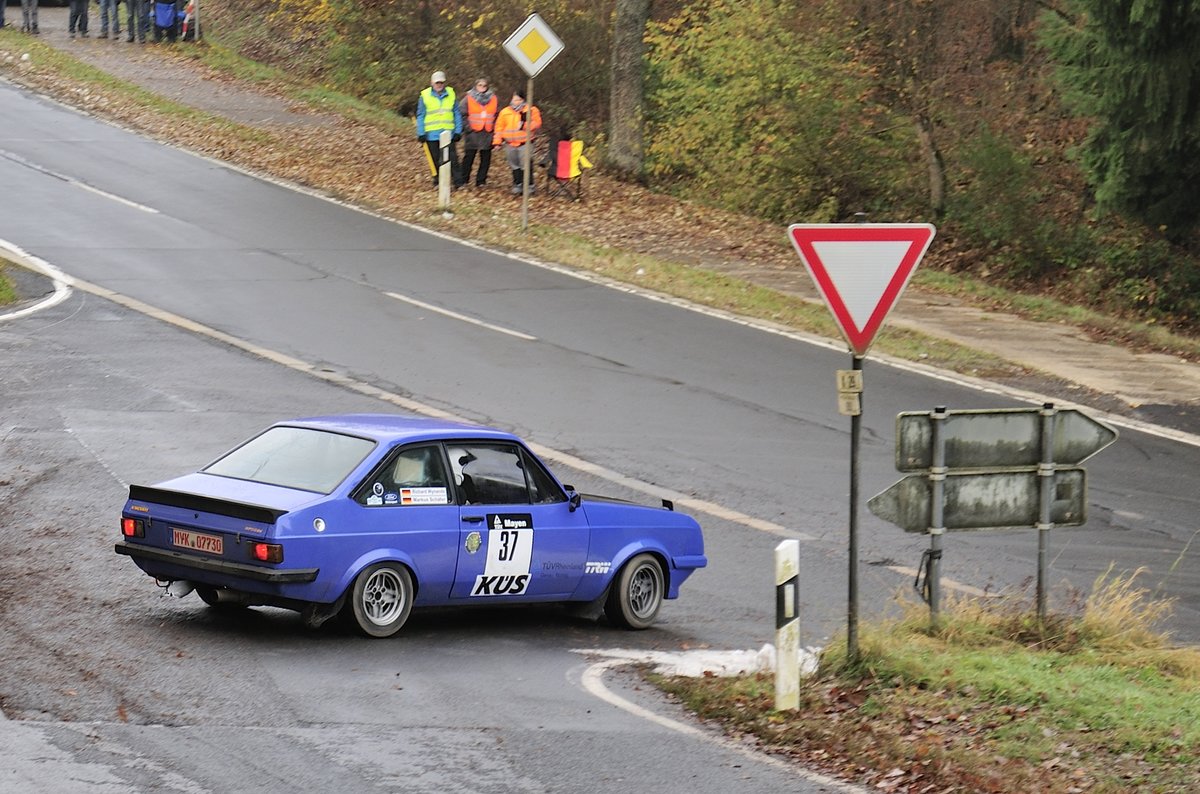 Nr. 37 Ford Escort RS 2000 Markus Schäfer & Richard Wynands, bei der "Youngtimer" 39. ADAC Rallye Köln Ahrweiler 12.11.2016, Morgens -2° auf teils noch glaten Asphalt.