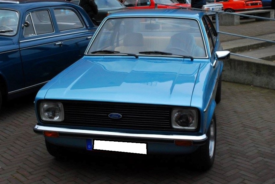 Ford Escort MK2, produziert von November 1974 bis August 1980. Im Gegensatz zum Escort MK1, wurde der MK2 nicht in England, sondern in Deutschland entwickelt. Der Wagen war als zwei- und viertürige Limousine und als dreitüriges Kombi namens "Turnier" lieferbar. Der abgelichtete Escort ist ein 1.3L im Farbton cosmosblau aus dem Modelljahr 1978. Der Vierzylinderreihenmotor hat einen Hubraum von 1297 cm³ und leistet 54 PS. Oldtimertreff Ruhr auf Zeche Ewald/Herten im März 2016.