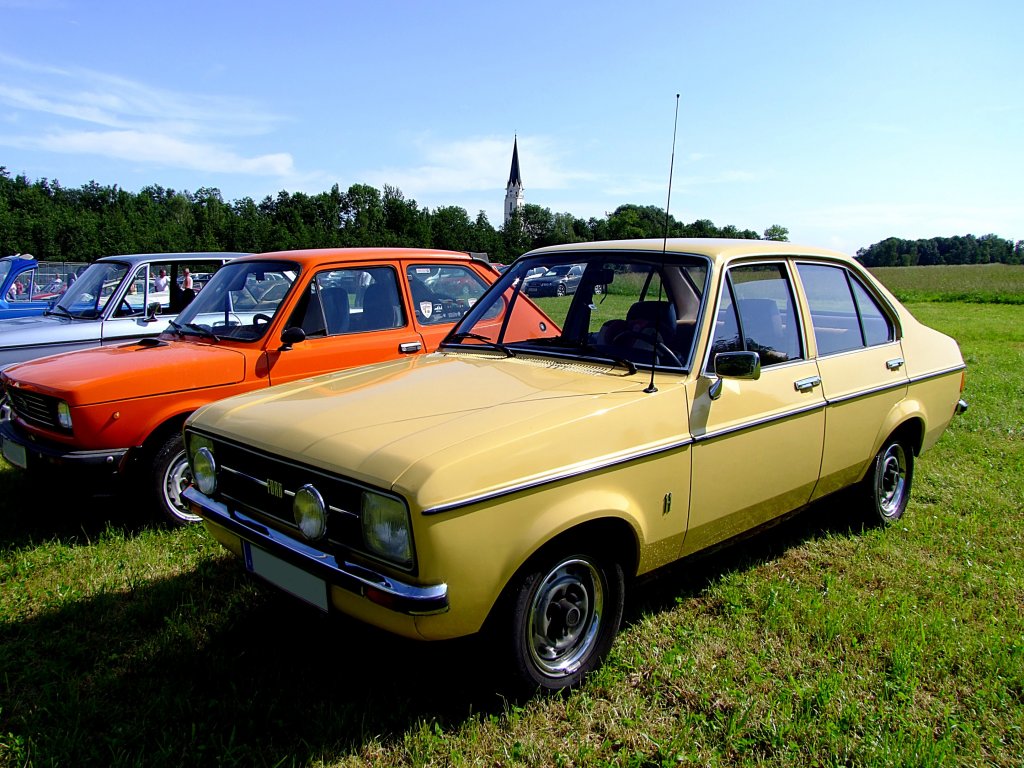 Ford MK1 Escort 1300E. Dem zunehmenden Wandel auf dem europäischen Markt Ende der 1960´er Jahre kommt Ford gleich mit zwei Neuentwicklungen entgegen. Im August 1968 präsentierte man unter dem Motto:  Familienwagen und sportlicher Flitzer  die erste Escort-Generation. Ihr schmaler Kühlergrill, der in die Scheinwerfer mündet, bringt ihm später den Spitznamen  Hundeknochen  ein. Als in England entwickelter Nachfolger für den Anglia wurde der Escort später auch in den Ford-Werken Genk/Belgien und Saarlouis/Deutschland gebaut. Europaweit war er Fords bisher erfolgreichstes Modell, in Deutschland ersetzte er den glücklosen P6, konnte sich jedoch gegen die Konkurrenz aus Rüsselsheim kaum behaupten. Das lag zum einen an seiner pummeligen Form und der simplen Technik, sowie der schlechten Straßenlage aufgrund der hinteren Blattfedern. Auch eine merkwürdige Modellpolitik trug ihren Teil dazu bei: So waren zuerst weder heizbare Heckscheibe noch Schiebedach lieferbar. In England war der Escort ab Jahresanfang 1968 erhältlich und verkaufte sich glänzend. Hier haben wir einen rechts gelenkten Escort MK1 im Farbton purple aus dem letzten Modelljahr 1974. Der Vierzylinderreihenmotor hat einen Hubraum 1298 cm³ und leistet im 1300E 72 PS. Classic car meeting in Abergavenny/South Wales am 25.05.2025.