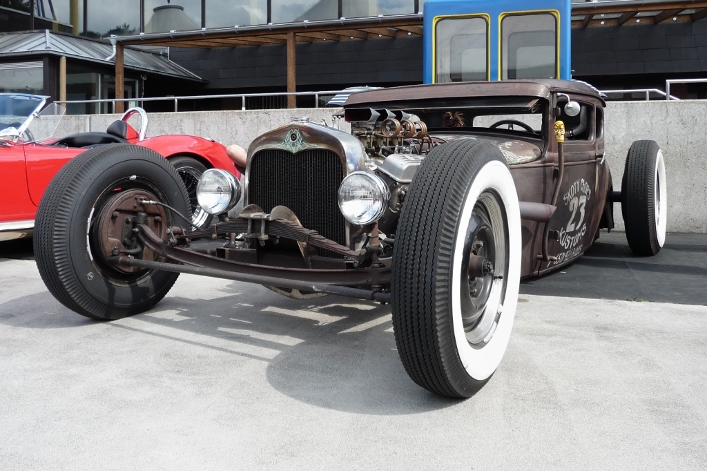 Extermer tiefer legen kann man ein Auto nicht mehr: Unter dem Fahrzeug war kein Platz mehr für die Achsen, also mussten sie vor bzw. hinter das Chassis. Basis des Fahrzeugs dürfte ein Ford Modell A von ca. 1929 sein. Gesehen auf der US-Car-Show in Grefrath im August 2010.