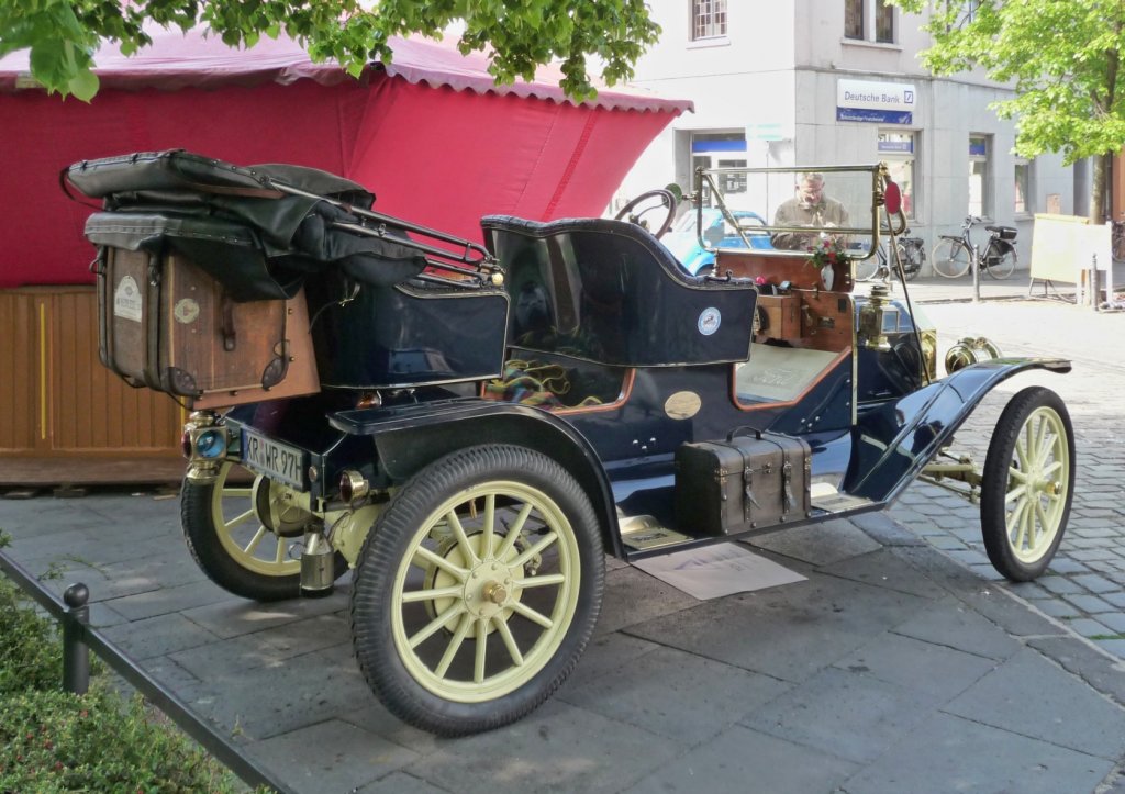 Als ältester Teilnehmer präsentiert sich ein Ford T "Tin Lizzy" von 1919 bei der Oldtimer-Rallye an der Kirche in Hüls. Das Fahrzeug kann häufiger im Krefelder Raum im täglichen Einsatz gesehen werden.