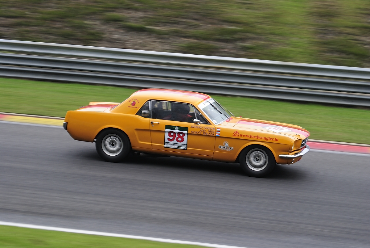 Mitzieher der Nr.98 Ford Mustang MK I,Bj.:1965, beim Dunlop FHR Langstreckencup, Youngtimer Festival Spa am 19.7.2015