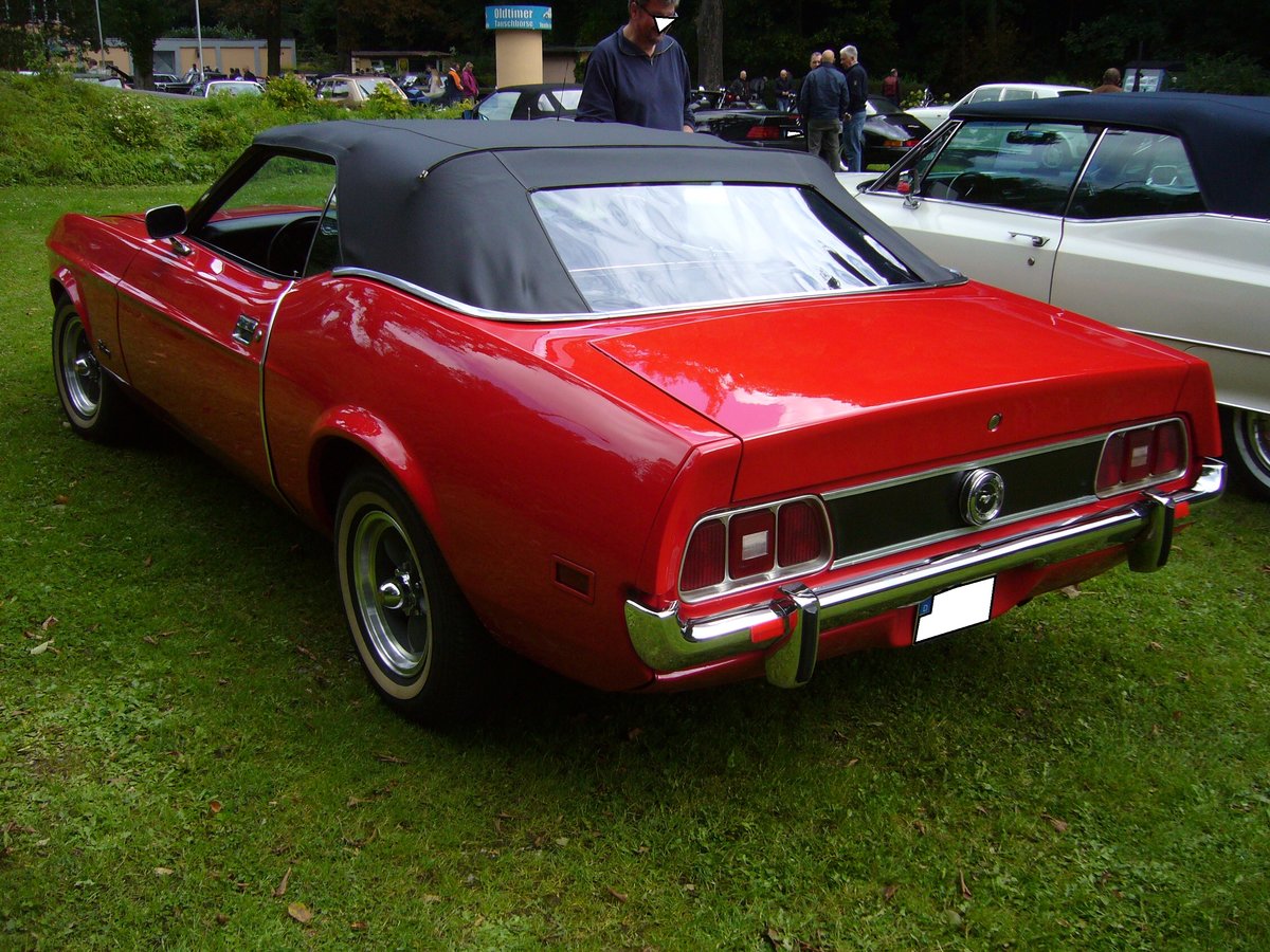 Heckansicht eines Ford Mustang 2 Convertible von 1973. Oldtimertreffen Schwarzwaldhaus/Neandertal am 17.09.2017.