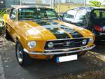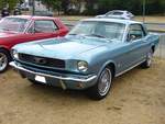 Ford Mustang 1 Hardtop Coupe des Modelljahres 1966 im selten bestellten Farbton sahara beige. Allein im Jahr 1966 verkaufte Ford 607.568 Autos vom Typ Mustang. Der Kunde konnte in diesem Modelljahr zwischen 23 verschiedenen Lackierungen wählen. Zur Auswahl standen vier Motorisierungen: Sechszylinderreihenmotor mit 3.3l Hubraum und 120 PS und ein V8-motor mit 4.7l Hubraum, der entweder 225 PS, 271 PS oder 289 PS leistet. Oldtimertreffen an der Niebu(h)rg in Oberhausen am 07.10.2018.