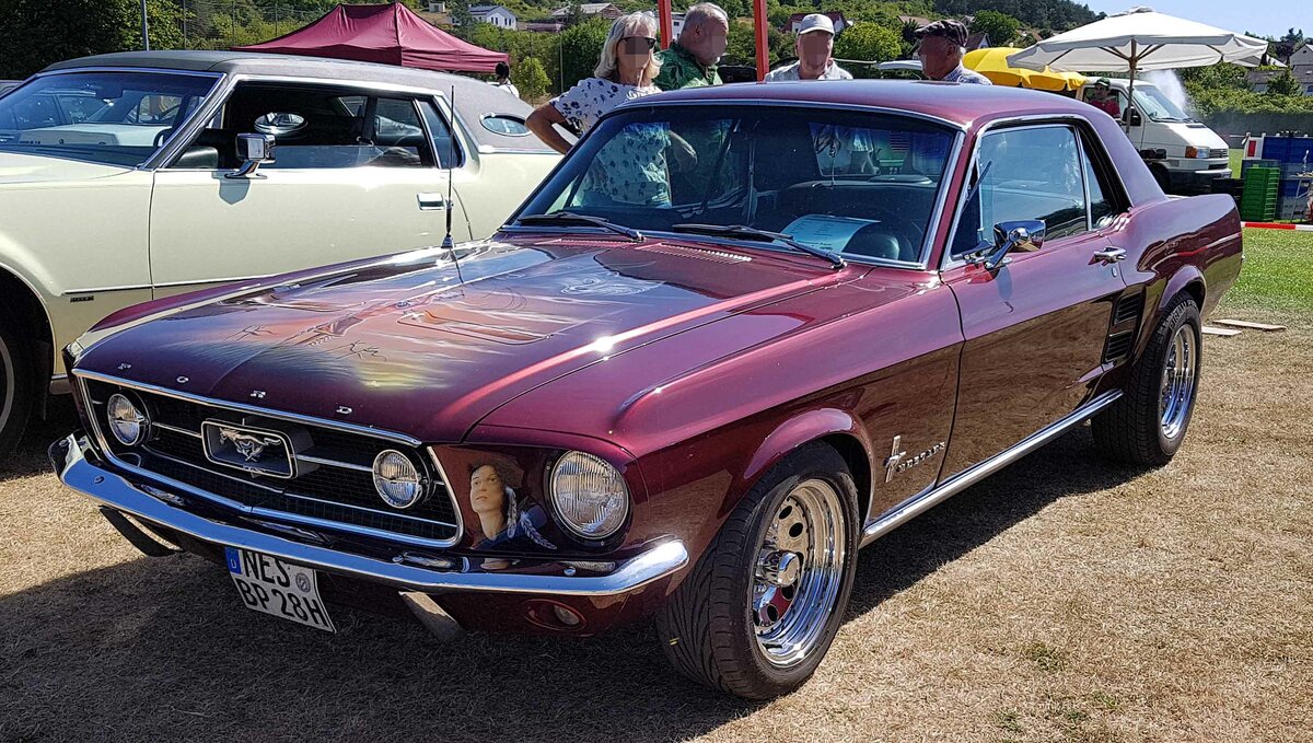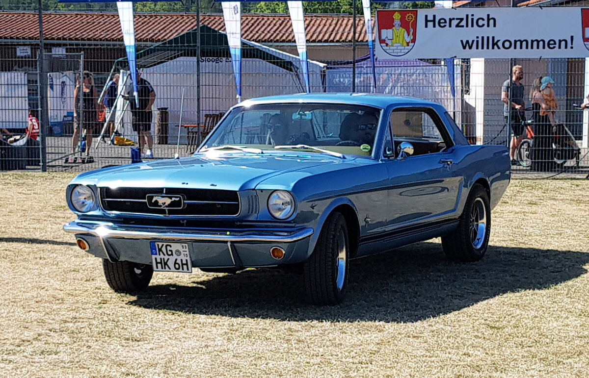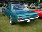 Heckansicht eines Ford Mustang 1 Convertible aus dem Modelljahr 1965. Classic Remise Düsseldorf am 26.05.2022.