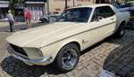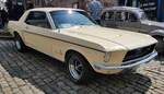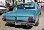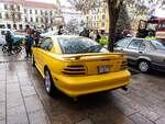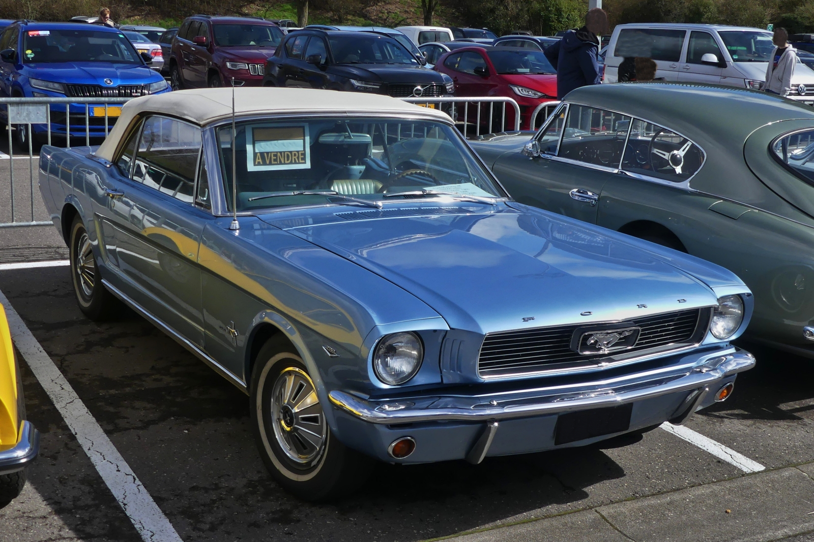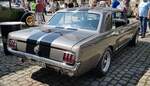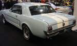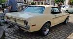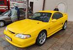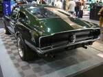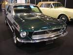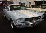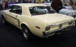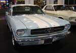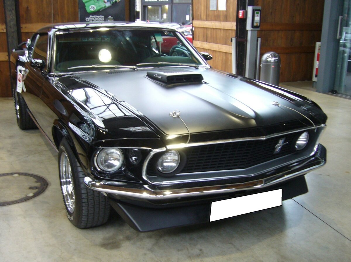 Ford Mustang Mach 1 aus dem Jahr 1969. Das Modelljahr 1969 bescherte dem interessierten Mustang-Kunden insgesamt fünf Ausstattungslinien. Diese nannten sich "Standard", "Deluxe", "Mach 1" (Foto), "Grande" und "E" was für Economy stand. Der Mach 1 war nur in der Karosserieversion Fastback Coupe lieferbar. Laut einer älteren Statistik bestellten rund 25% aller Käufer im Jahr 1969 die "Mach 1" Version. Standardmotorisierung dieses Modells war ein V8-Motor mit einem Hubraum von 302 cui (4949 cm³) mit 220 PS. Gegen Aufpreis waren auch stärkere Motoren lieferbar. Classic Remise Düsseldorf am 26.02.2024.