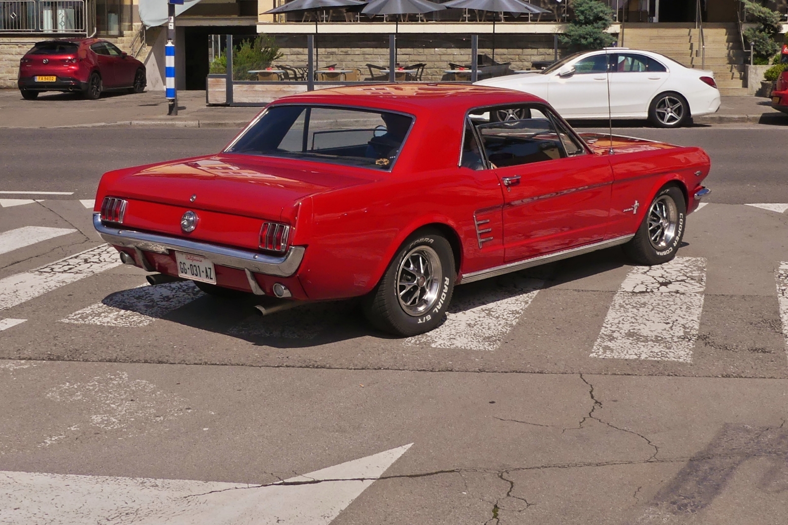 Ford Mustang aufgenommen beim Verlassen eines Parkplatzes. 05.2024