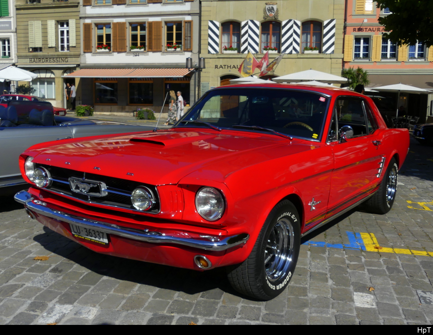 Ford Mustang Convertible Baujahr 1967. Im Hintergrund ein Fiat 127. Am 20.08.2006 beim Oldtimertreffen des Mülheimer BMW Händlers Phillip.