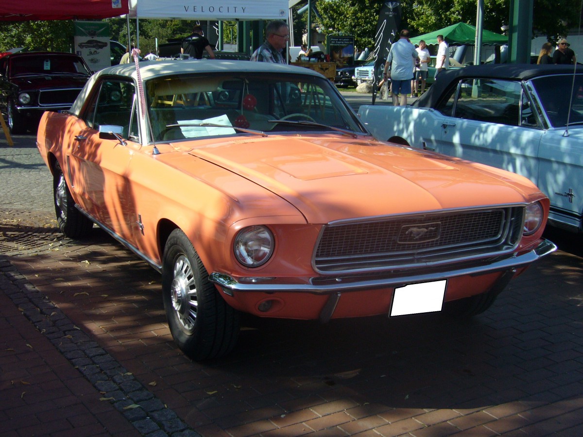 Ford Mustang Hardtop Coupe des Modelljahres 1968 in der wohl eher seltenen Farbe eastertime coral. US-carmeeting Centro Oberhausen am 19.07.2014.