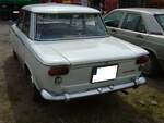 Ford Taunus P4 12M Coupe, produziert von 1963 bis 1966. Der P4 wurde im September 1962 als zweitürige Limousine vorgestellt. 1963 folgten das gezeigte Coupe, die viertürige Limousine und das Kombimodell. Der Käufer konnte bei der Motorisierung zwischen zwei V4-Motoren wählen: 1183 cm³ mit 40 PS oder 1498 cm³ mit 50 PS. In der sportlichen TS-Ausstattung leistet der 1.5l Motor sogar 55 PS. Oldtimertreffen an der "Alten Dreherei" in Mülheim an der Ruhr am 19.06.2022.
