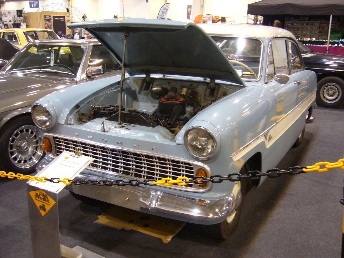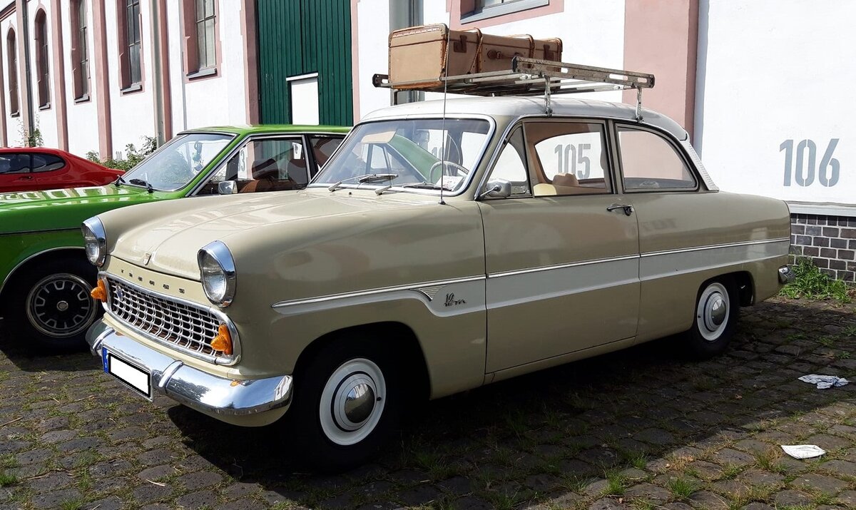 Ein Ford 12m "Streifentaunus" startet bei der Oldtimer-Rallye in Hüls.