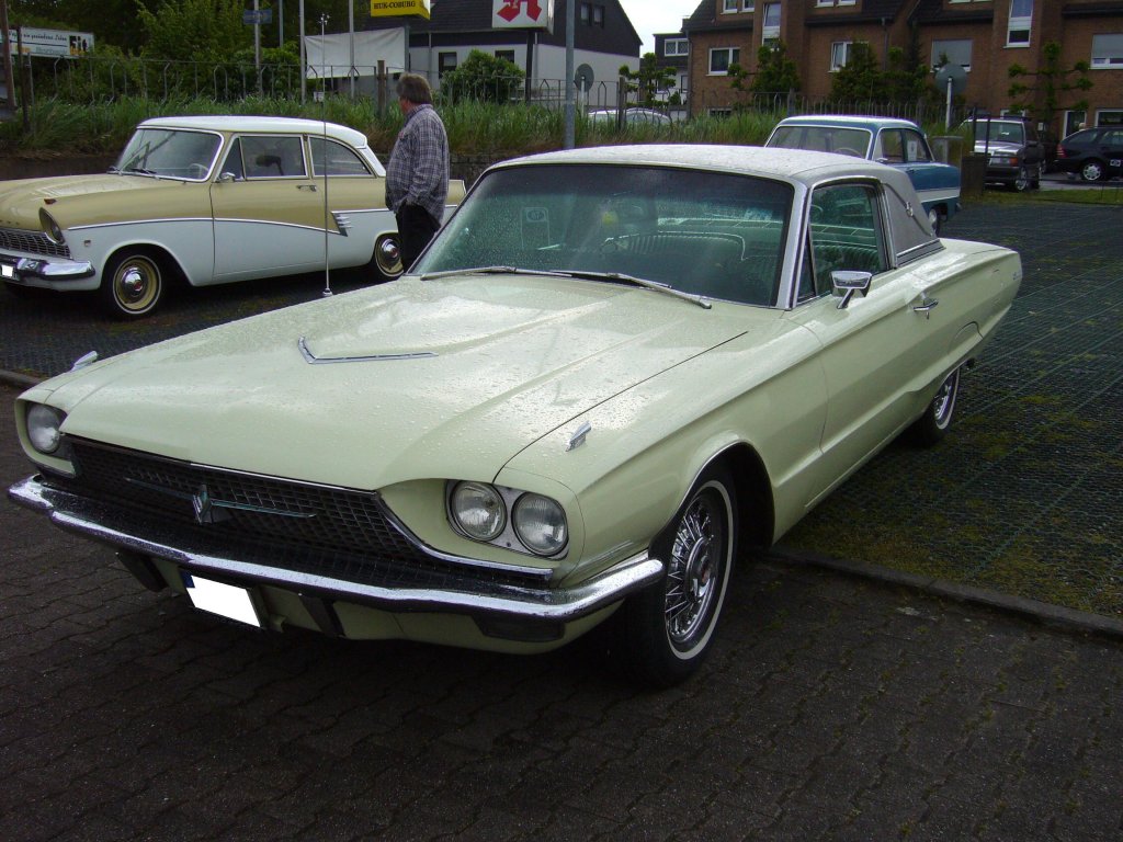 Ford Thunderbird Town Landaulet Hardtop Coupe von 1966. Der 66´er T-Bird konnte mit zwei verschiedenen V8-motoren geordert werden: 6.4l mit 275 PS oder 7.0l mit 345 PS. Vom Coupe-Modell wurde in diesem Modelljahrgang 64.027 Einheiten abgesetzt. Davon entfielen 35.105 Autos auf das Town Landaulet Hardtop Coupe. Alt-Ford-Treffen in Essen am 12.05.2013.