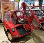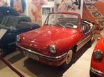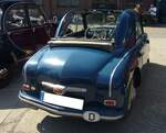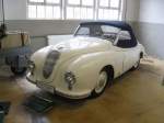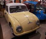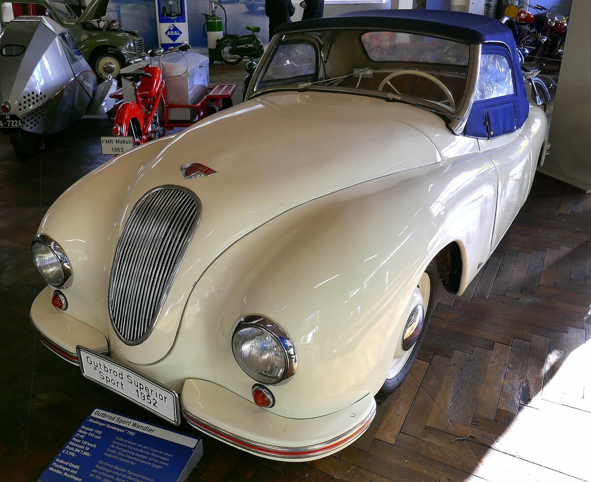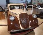 Gutbrod Superior Cabriolimousine aus dem Jahr 1952. Gebaut wurde das Modell in den Jahren von 1950 bis 1954 in Calw/Baden-Württemberg. In diesem Auto ist noch der Zweizylinderzweitaktreihenmotor mit einem Hubraum von 593 cm³ und 22 PS verbaut. Kurz darauf erhöhte sich das Zylindervolumen auf 663 cm³ und die Leistung auf 26 PS in der Vergaserversion, oder sogar 30 PS als Einspritzer. Zylinderhaus in Bernkastel-Kues am 23.05.2024.
