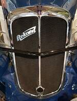 =Frontgrill mit Herstelleremblem und Typenbezeichnung des Hanomag Rekord Cabrio, präsentiert vom Zylinderhaus in Bernkastel-Kues, 04-2023