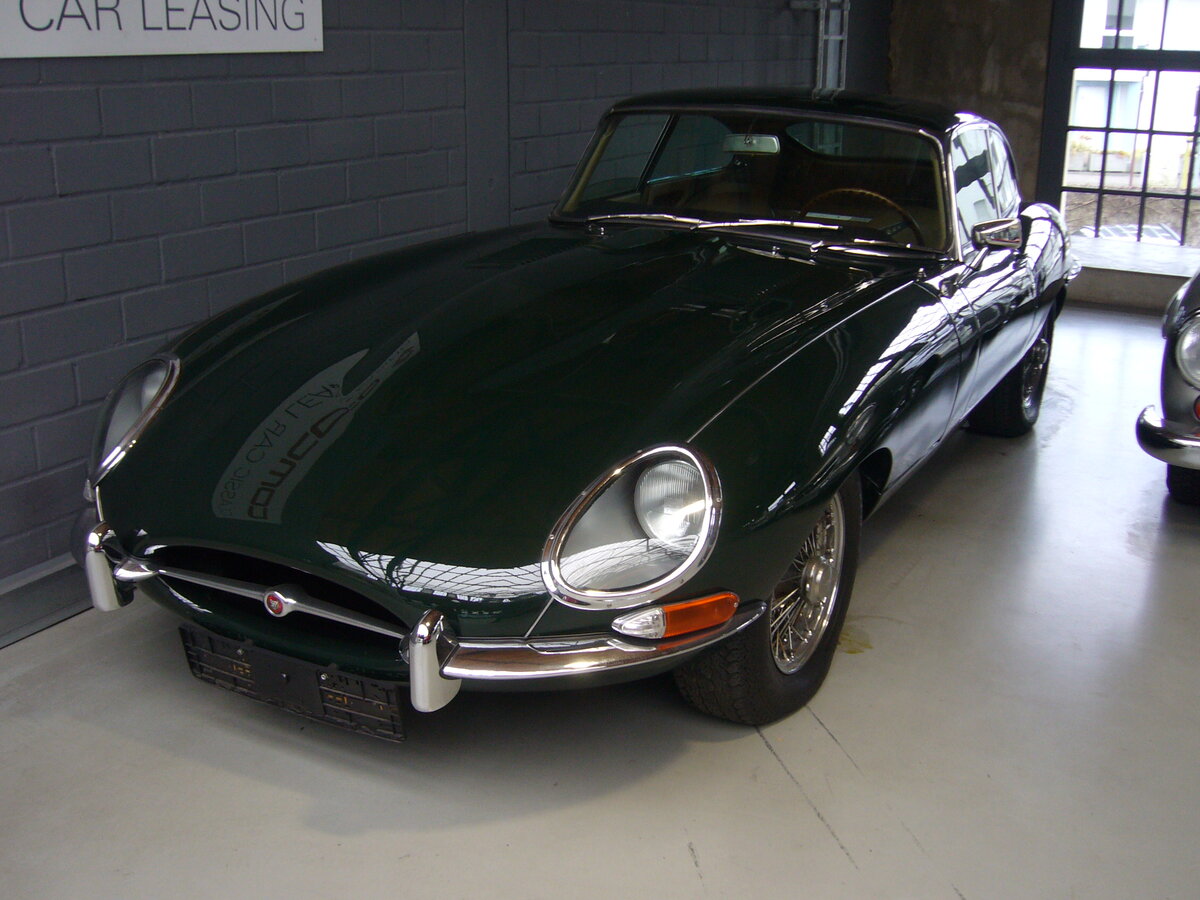Jaguar E-Type Series 1 Coupe. Der E Type, ein Klassiker par excellence im Farbton opalescent grey. Vorgestellt auf dem Genfer Salon des Jahres 1961. Wie schon 13 Jahre zuvor der XK120 stieß auch der E Type in der Fachpresse auf einhellige Begeisterung. Sowohl Cabriolet, als auch das FHC (Fixed Head Coupe) genannte, geschlossene Modell waren sofort der Traumwagen der breiten, automobilen Masse. Obwohl die Warteliste bzw. Lieferzeit lang war, bot der damalige Jaguar-Boss William Lyons den Wagen zu einem unerwartet günstigen Preis an. Der Sechszylinderreihenmotor des Series I hat einen Hubraum von 3781 cm³ und leistet 265 PS. Die Höchstgeschwindigkeit des Series I betrug 237 km/h. Classic Remise Düsseldorf am 16.12.2021.