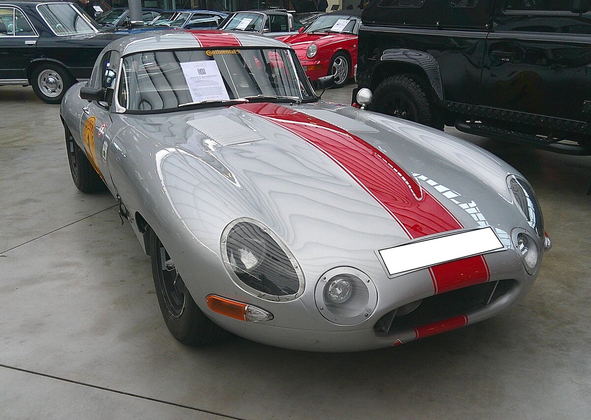 Jaguar E Type Series 2 Roadster im Farbton carmin red. Produziert wurden die Series 2 Modelle von 1964 bis 1971. Der E Type wurde bereits 1961 vorgestellt. Anfangs wurde er noch vom 3.8l Sechszylinderreihenmotor aus dem Vorgängermodell XK 150 befeuert. Im Jahr 1964 wurde der Hubraum auf 4.235 cm³ aufgebohrt und die Series 2-Modelle waren geboren. Die Motorleistung blieb allerdings gleich. Lediglich das Drehmoment und die Vollgasfestigkeit veränderten sich. Ab Herbst 1971 wurde der bewährte Sechszylindermotor gegen einen V12-Motor ausgetauscht und das ganze nannte sich dann Jaguar E Type Series 3. Der gezeigte E Type Series 2 Roadster ist mit einem recht seltenem Hardtop Dach versehen. Classic car meeting in Melton Mowbray/GB am 10.08.2025.