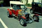 Jaguar E Type Series 2 Roadster im Farbton carmin red. Produziert wurden die Series 2 Modelle von 1964 bis 1971. Der E Type wurde bereits 1961 vorgestellt. Anfangs wurde er noch vom 3.8l Sechszylinderreihenmotor aus dem Vorgängermodell XK 150 befeuert. Im Jahr 1964 wurde der Hubraum auf 4.235 cm³ aufgebohrt und die Series 2-Modelle waren geboren. Die Motorleistung blieb allerdings gleich. Lediglich das Drehmoment und die Vollgasfestigkeit veränderten sich. Ab Herbst 1971 wurde der bewährte Sechszylindermotor gegen einen V12-Motor ausgetauscht und das ganze nannte sich dann Jaguar E Type Series 3. Der gezeigte E Type Series 2 Roadster ist mit einem recht seltenem Hardtop Dach versehen. Classic car meeting in Melton Mowbray/GB am 10.08.2025.
