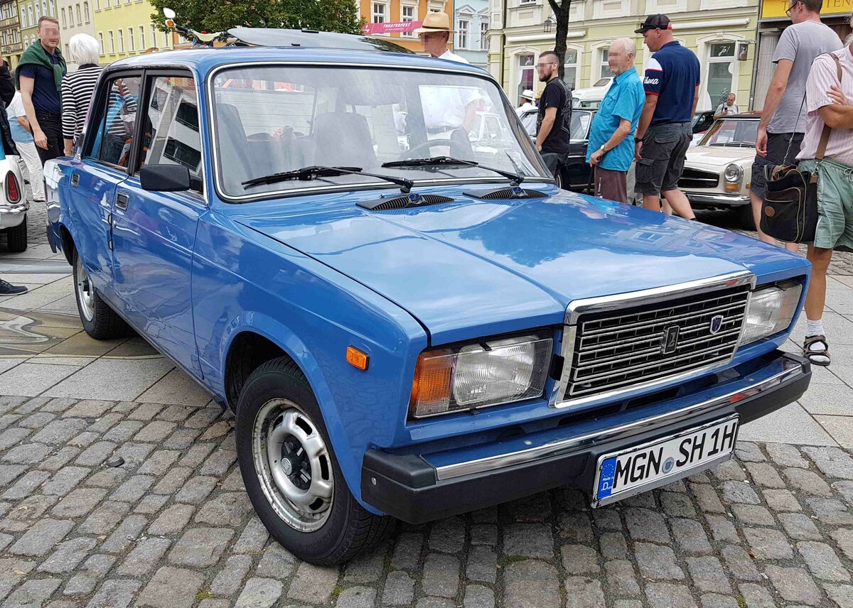 Lada 2107 Heckansicht mit großen Heckleuchten im Originalzustand gesehen in Finsterwalde im November 2012