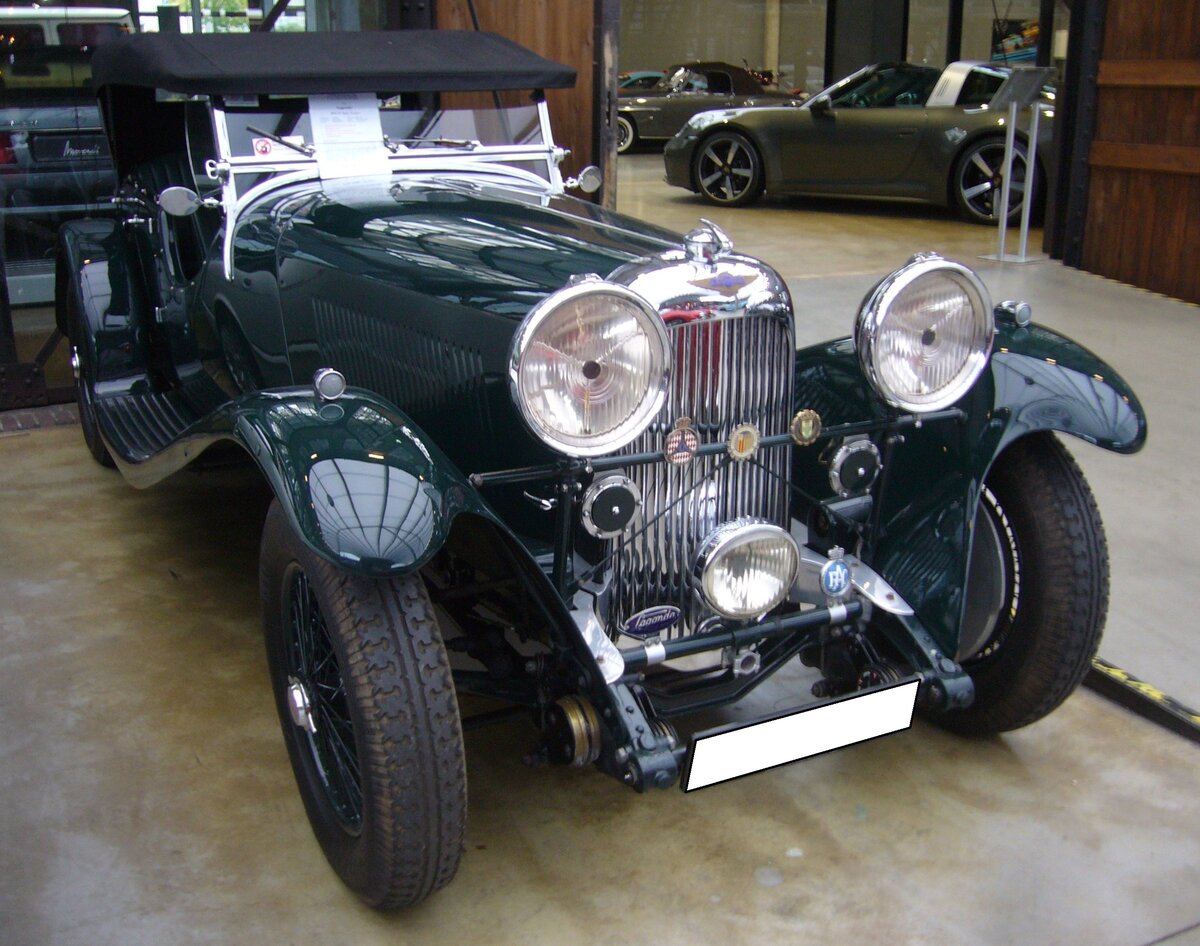 Lagonda M45 T7 Tourer aus dem Jahr 1934. Zwischen 1920, dem Todesjahr des Firmengründers Wilbur Gunn und dem Jahr 1935 als Alan Godd die ruinöse Firma Lagonda aufkaufte, war die Geschichte der Marke von ständigen Modell- und Motorenwechsel geprägt. Hier sehen wir einen M45 T7 Tourer aus dem Jahr 1934. Der Sechszylinderreihenmotor hat einen Hubraum von 4467 cm³ und leistet 140 PS. Angeblich soll dieser Lagonda heute noch eine Höchstgeschwindigkeit von 165 km/h erreichen. Classic Remise Düsseldorf am 01.11.2024.