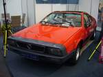 Lancia Beta Montecarlo im Farbton rosso capanelle. Auf dem Genfer Salon des Jahres 1975 präsentierte Lancia neben dem Beta HPE auch den Montecarlo. Ein zweisitziges Mittelmotor-Coupe mit Heckantrieb. Das Auto trat die Nachfolge des Fulvia Coupe an und basierte auf dem Modell Beta. Den Vierzylinderreihenmotor hatten die Techniker quer vor die Hinterachse gesetzt. Die meisten Modelle wurden mit dem 1995 cm³ Motor und einer Leistung von 120 PS ausgeliefert. Ab 1976 gab es das Modell auch mit dem 1300´er Motor aus dem Beta Coupe. Die 1300´er wurden fast ausschließlich in seinem Heimatland Italien verkauft. Techno Classica Essen am 05.04.2024.