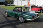 Lotus Elan Plus 2S 125/5 der Modelljahre von 1972 bis 1974. Das Modell 125/5 (die 5 in der Typenbezeichnung steht für ein Fünfganggetriebe) war die letzte Ausbaustufe des bereits 1969 vorgestellten Elan Plus 2. Der fünffach gelagerte Motor war auf dem Block des Ford Cortina aufgebaut und leistet 125 PS aus einem Hubraum von 1558 cm³ Die Höchstgeschwindigkeit lag bei ca. 190 km/h. Classic car meeting in Pontypool/South Wales am 17.05.2025.