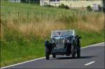 MG PA Roadster, gebaut in den Jahren 1934 und 1935. Der intern auch "Midget" (Zwerg) genannte PA, ist serienmäßig mit einem Vierzylinderreihenmotor, der aus einem Hubraum von 847 cm³ 36 PS leistet, motorisiert. Der gezeigte PA ist mit einem originalgetreuen Nachbau eines Kompressors zur Leistungssteigerung ausgestattet.. Neben der Roadster-Version gab es von diesem Modell noch eine Coupe-Version. Classic car meeting in Pontypool/South Wales am 17.05.2025.