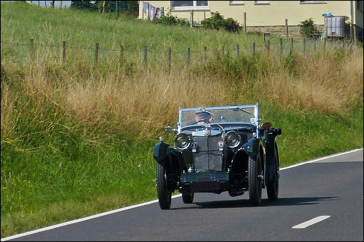 . Rundfahrt mit MG's der 1930 Jahre auf den Strassen im Norden von Luxemburg. MG D Type Jarvis, laut Veranstalter der Tour gibt es Weltweit nur dieses ein Auto mit dieser Karosserieform, hiermit bedanke ich mich aufs herzlichste beim "Bob" für die Informationen zu den Fahrzeugen die Er mir mitgeteilt hat. 01.08.2014