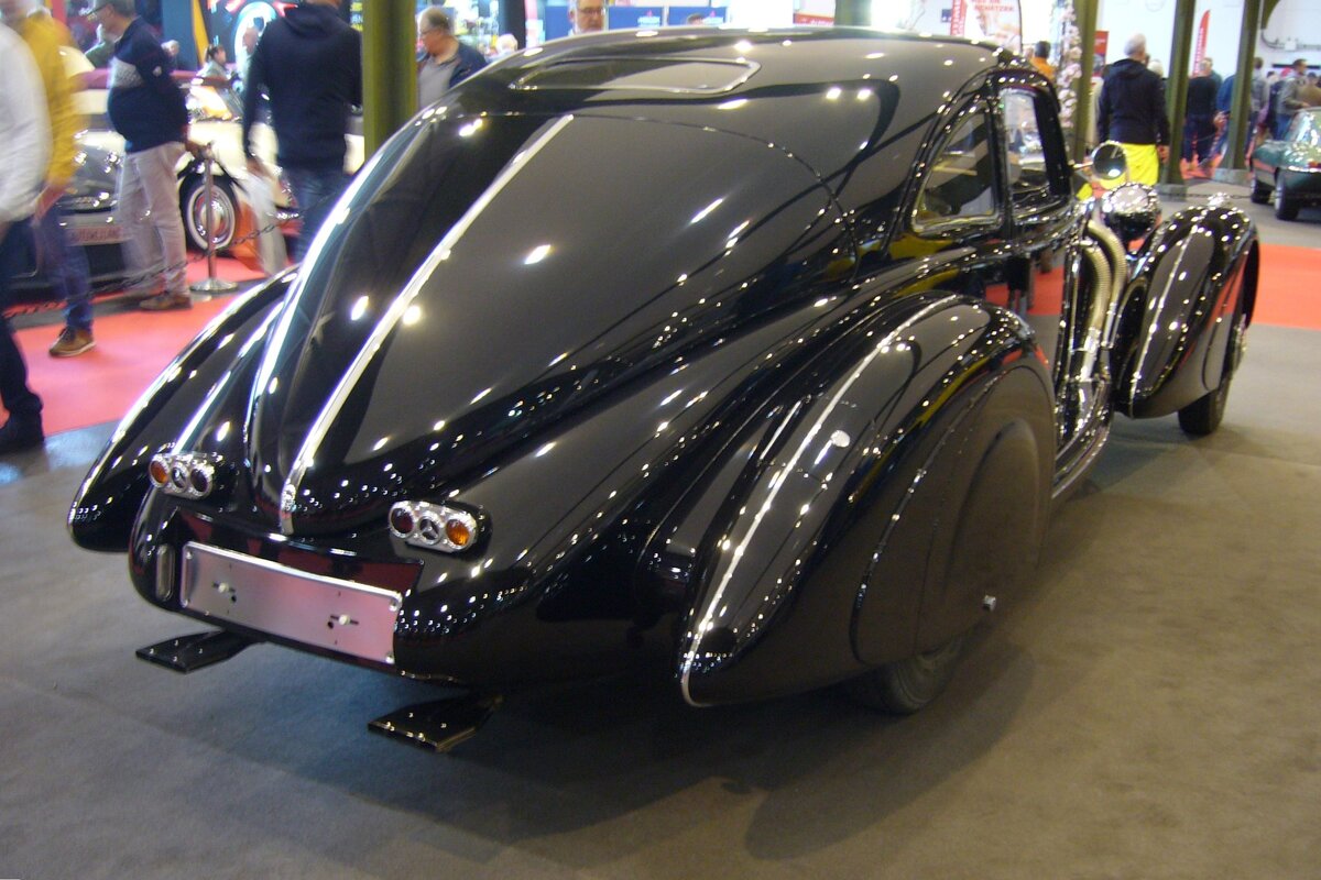 Heckansicht der Replica eines Mercedes Benz W29 500K "Autobahnkurier". Techno Classica Essen am 05.04.2024.