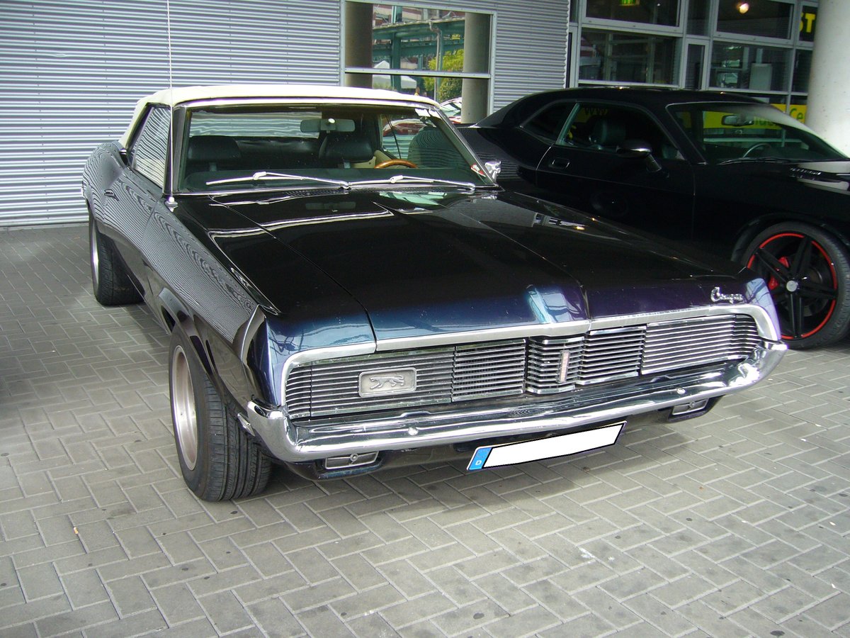 Mercury Cougar Convertible des Modelljahres 1969. Dieses Cabriomodell verkaufte sich im Modelljahr 1969 5796 mal. Der Grundpreis lag bei US$ 3382,00. Der Käufer konnte zwischen sechs Motorisierungsstufen wählen: Die V8-motoren haben einen Hubraum zwischen 5.8l und 7.0l und leisten zwischen 250 und 335 PS. 14. US-Cartreffen am 29.07.2017 im CentroO.