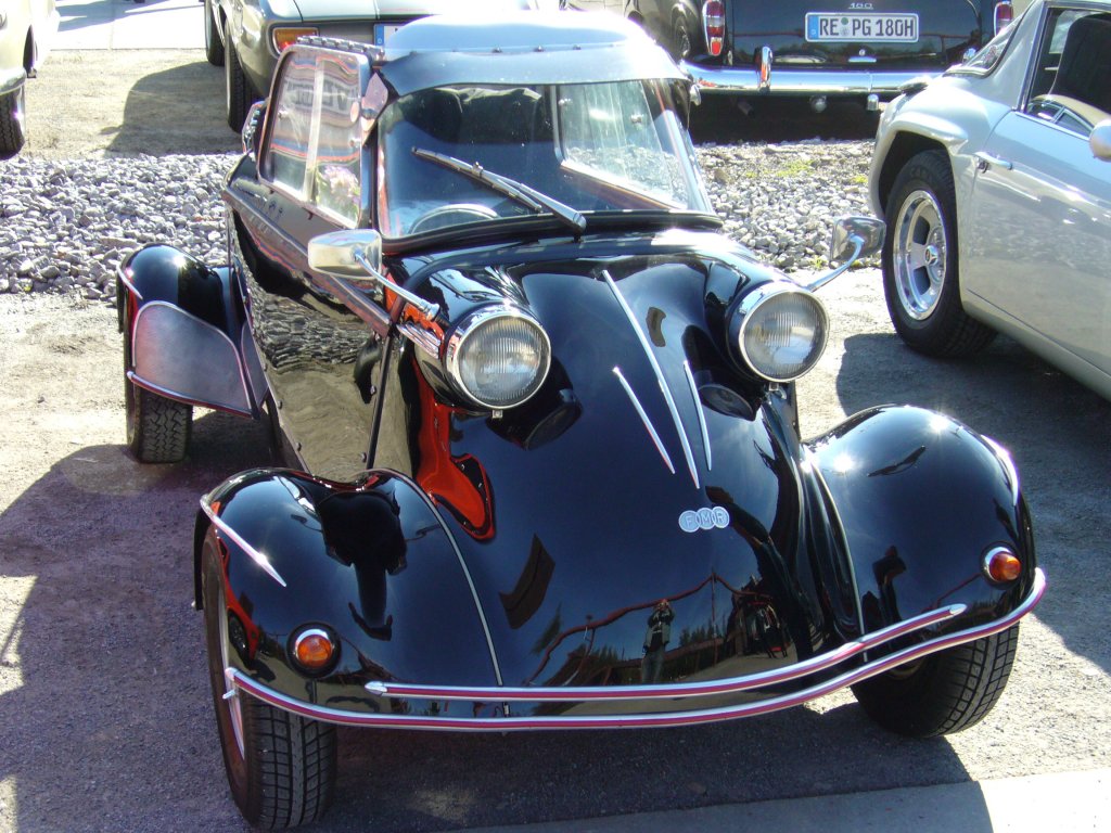 FMR-Messerschmitt Tg 500. 1958 - 1961. Der Tg 500 war eine sportliche Ausführung des normalen Kabinenrollers mit 4 Rädern und und einem 493 cm³ 2-Zylinder-Zweitakt-Twins, der 19,5 PS leistet. Der Tg 500 war im Verhältnis zum 1-Zylinder Karo ein Kraftpaket. Es gab den Typ mit Plexikuppeldach oder als Roadster, wie hier abgelichtet. Der Tg 500 soll ca. 950 mal gebaut worden sein. Oldtimertreffen Zollverein. DIE RUBRIK STIMMT NICHT GANZ!!!