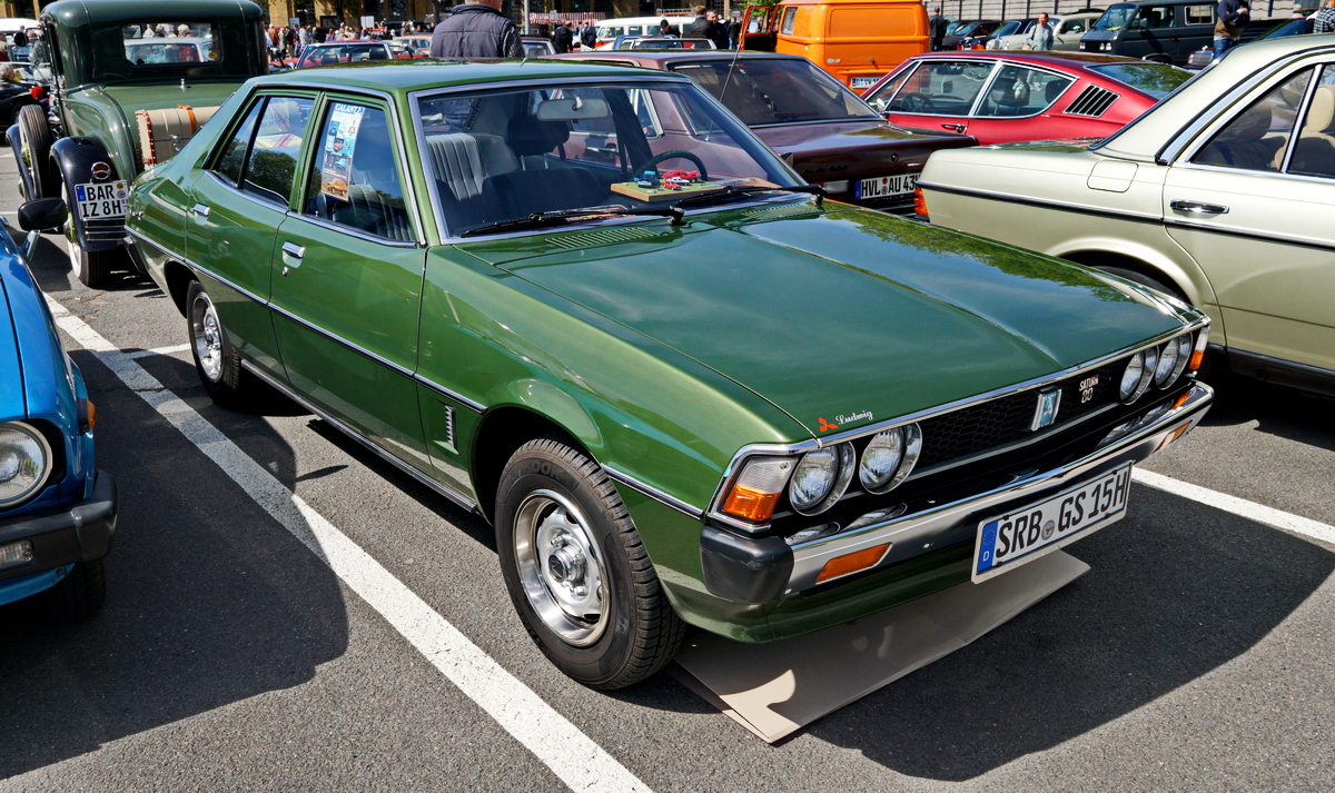 Mitsubishi Galant Sigma. 4-Zylinder Motor mit 1597ccm und 75PS. Vmax 150km/h. Foto:32. Oldtimertage Berlin-Brandenburg; 13.05.2019