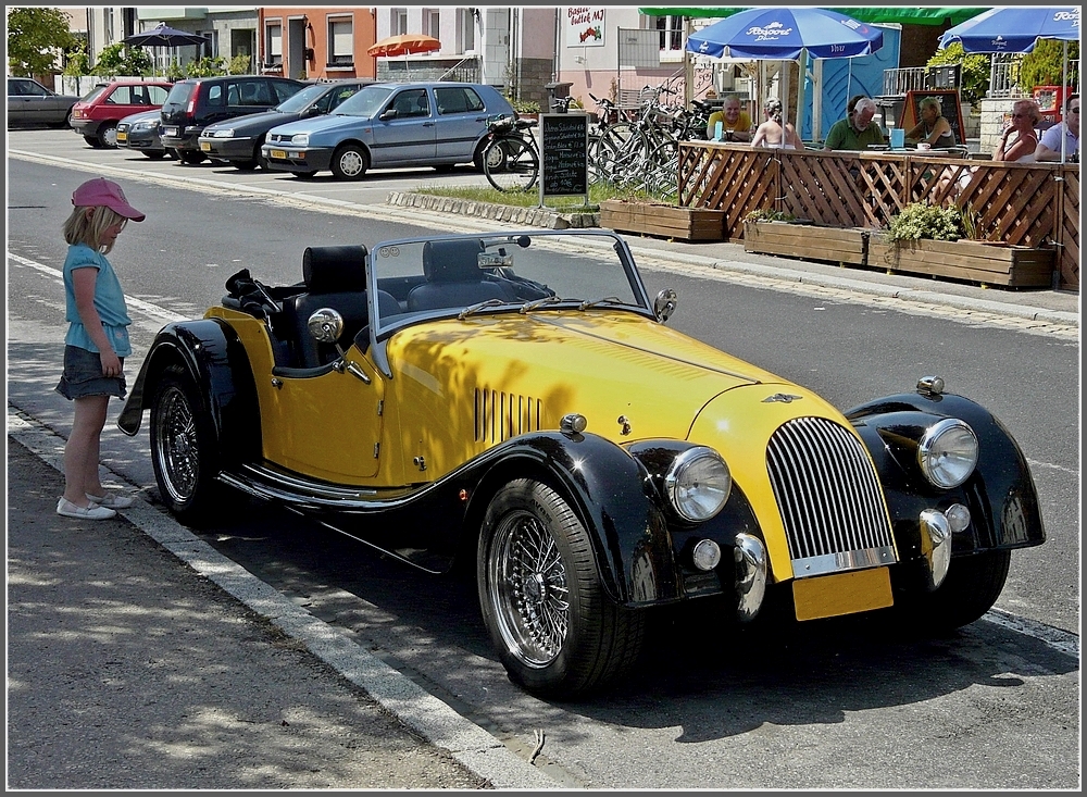 Unsere Enkeltochter bestaunt diesen schönen "Morgan Roadster" Sportwagen in Wasserbillig. 27.06.2010