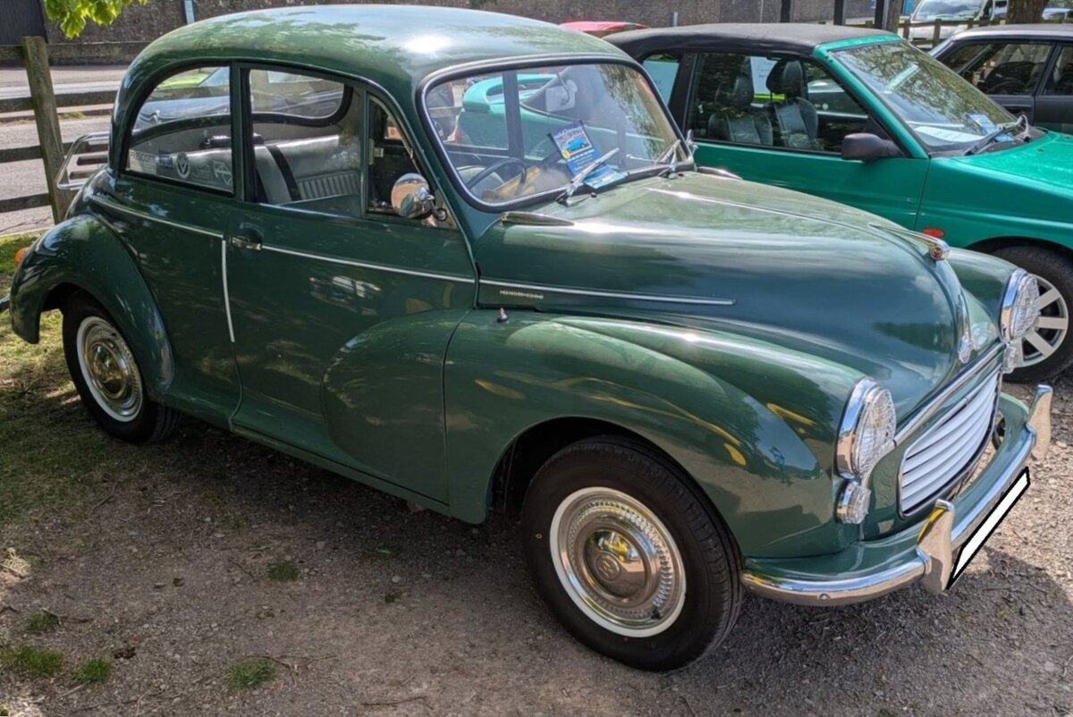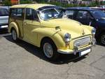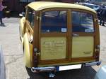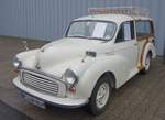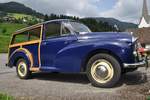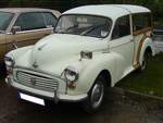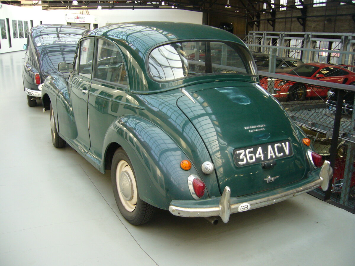 Heckansicht eines Morris Minor 1000, produziert von 1956 bis 1971. Der Minor 1000 war die dritte Ausbaustufe des bereits 1948 vorgestellten Minor. Die vorherigen Modelle nannten sich Minor MM (1948 bis 1952) und Minor Series II (1952 bis 1956). Der Minor war ein Millionenseller und somit der "Volkswagen" der Briten. Der Vierzylinderreihenmotor hat einen Hubraum von 1098 cm³ und leistet 49 PS. Classic Remise Düsseldorf am 28.09.2021.