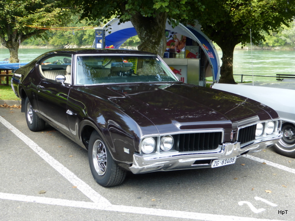 Oldsmobile Cutlass 442 Coupe aus dem Jahr 1971. Im Jahr 1971 war das Cutlass 442 Coupe das stärkste Modell der Midsize-Baureihe Cutlass aus dem Hause Oldsmobile. Das Modell sollte die sportlichen Fahrer/innen ansprechen. Es standen dem Interessenten alleine 15 verschiedene Felgen-Designs zur Auswahl. Angetrieben wird das Coupe von einem V8-Motor mit einem Hubraum von 7456 cm³ und einer Leistung von 340 PS. Techno Classica Essen am 05.04.2024. Michael H.