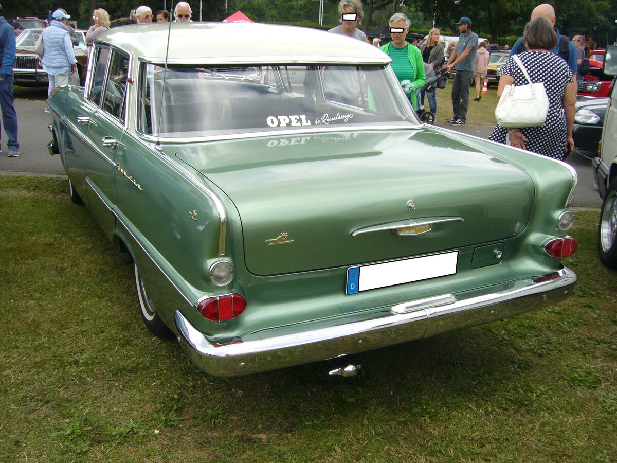 Heckansicht eines Opel Kapitän P-LV aus dem Jahr 1962. Oldtimertreffen an der Dreieckswiese in Duisburg am 01.08.2021.