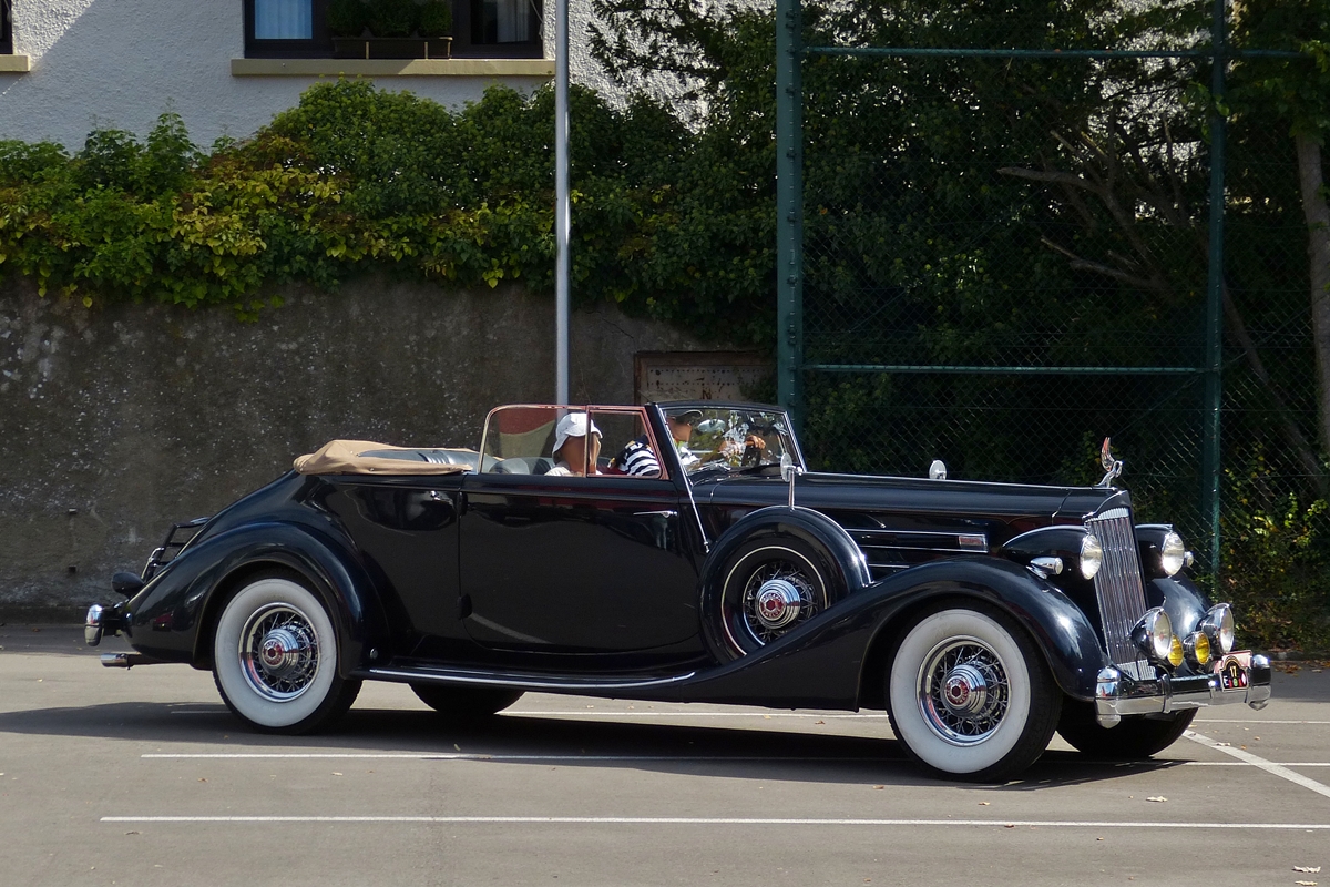 . Packard Twelve Cabrio kommt am 20.09.2014 auf dem Pausen Parkplatz in Diekirch an, bei der FIVA World Rally Rundfahrt durch Luxemburg.