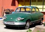 Panhard Dyna Junior X. In der unmittelbaren Nachkriegszeit gab es überall in Europa, also auch in Frankreich, Materialbeschränkungen. Dies war in allen Industriezweigen bis weit in die 1950`er Jahre spürbar. Während einige Hersteller der Automobilindustrie bei der Materialbelieferung Vorrang hatten, wie beispielsweise Renault, das mit seinem 4CV als erster Hersteller voll einsatzfähig war, mussten andere Hersteller warten und meist ihre überarbeiteten Vorkriegsfahrzeuge anbieten. In dieser tristen Automobillandschaft stach Panhard mit seinem Dyna X in seinem unverwechselbaren Stil und der Aluminiumkarosserie hervor. Von 1951 bis 1956 wurde auf dieser Basis ein hübscher, kleiner Roadster, der gezeigte Dyna Junior, gebaut. Ab 1954 wurde der vom Dyna X übernommene Kühlergrill mit der Kugel in der Mitte verbaut. In diesem Jahr wird die Version mit den vier Stuer-PS (4CV) eingestellt, so das nur noch das Cabrio im Handel bleibt. Der Zweizylinderboxermotor hat einen Hubraum von 851 cm³ und leistet 42 PS. Darüber hinaus kann das Modell mit einem MAG-Kompressor geordert werden. Mit dieser Option erhöht sich die Leistung auf 60 PS. Diese Motorleistung ist gut für eine Höchstgeschwindigkeit von rund 145 km/h. Classic Remise Düsseldorf am 26.08.2025.