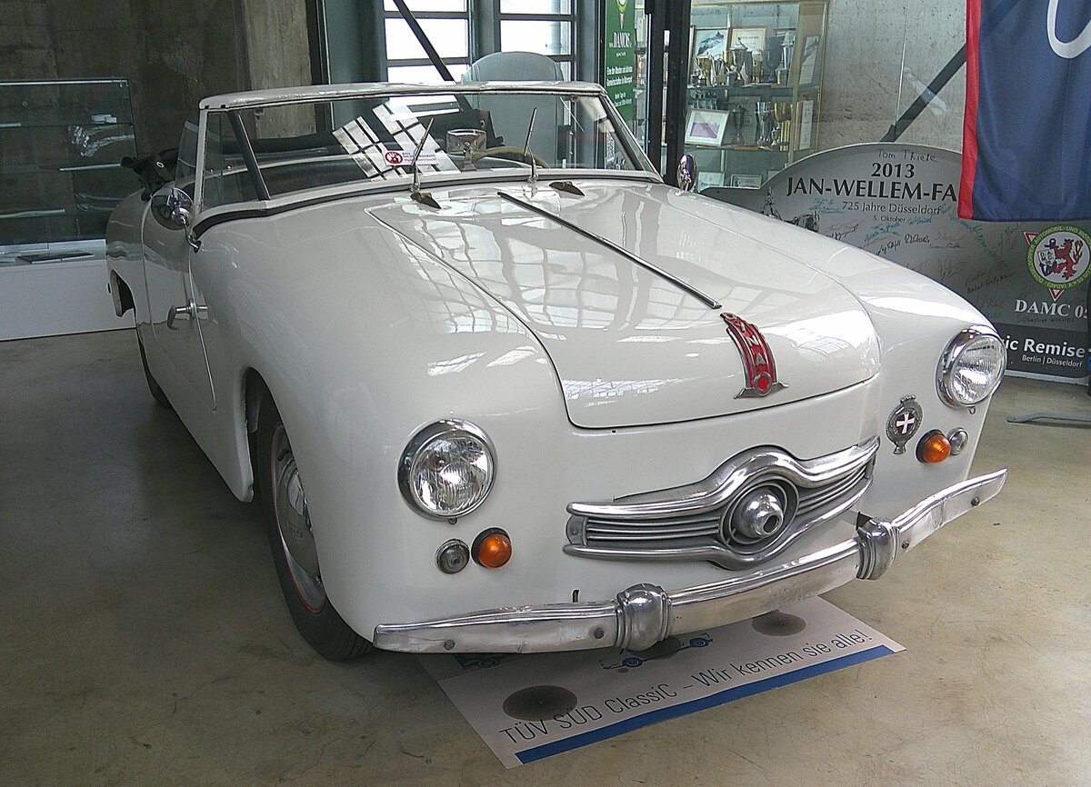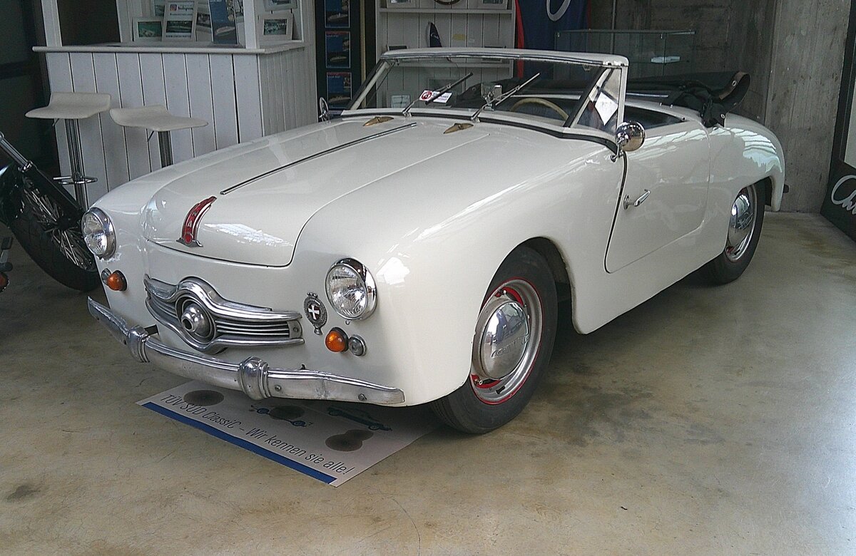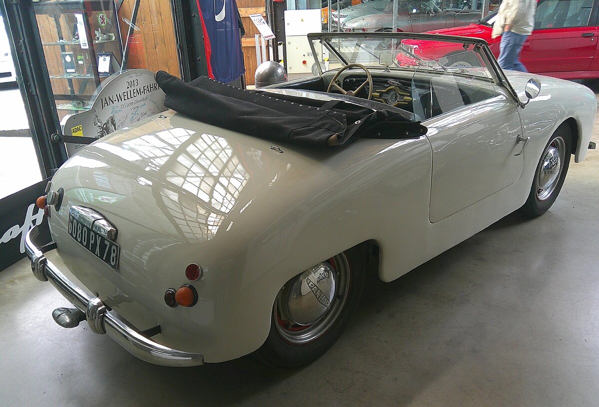 Panhard PL 17. 1959 - 1965. Der PL 17 war das letzte PKW-Modell der legendären Marke Panhard. Der extrem aerodynamische Wagen (cw-Wert von 0,26) wiegt nur ca. 800 kg. Somit verhilft der 2-Zylinderboxermotor mit 42 PS aus 851 cm³ Hubraum zu einer Höchstgeschwindigkeit von 130 km/h. Oldtimertreffen Industriemuseum Ennepetal am 01.11.2015.