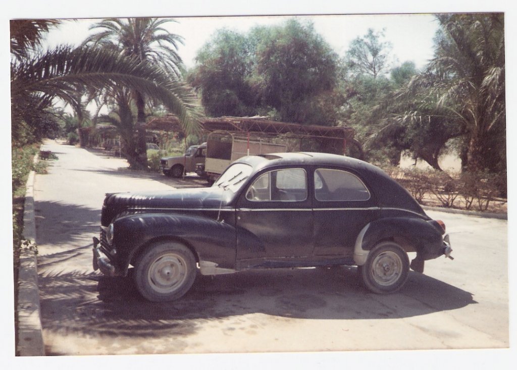 Peugeot 203 Limousine. 1948 -1960. Es handelt sich um ein eingescanntes Bild. Die Aufnahme entstand im Juli 1984 in Monastir/Tunesien. Man beachte die montierten VW-Rückleuchten.